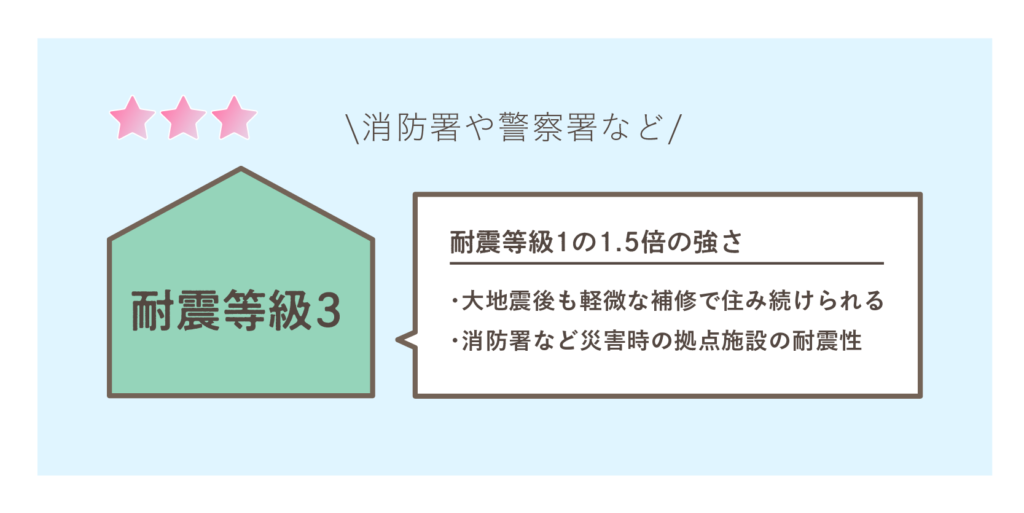 耐震等級1、耐震等級2、耐震等級3と3種類に分けられています。