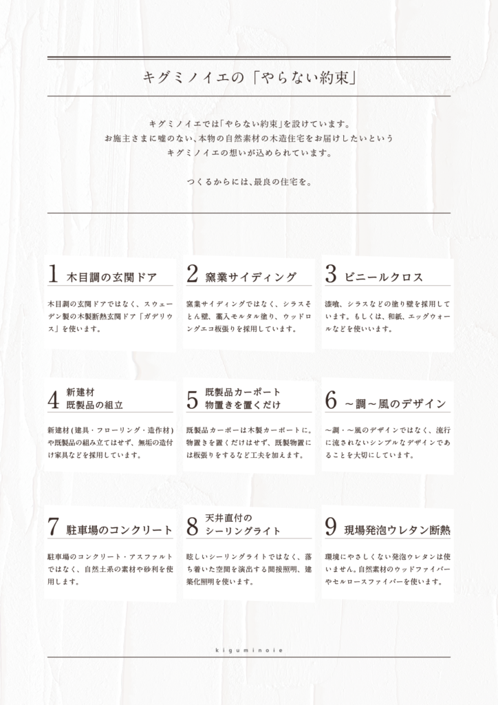 今日はこの「キグミノイエのやらない約束」をご紹介いたします。