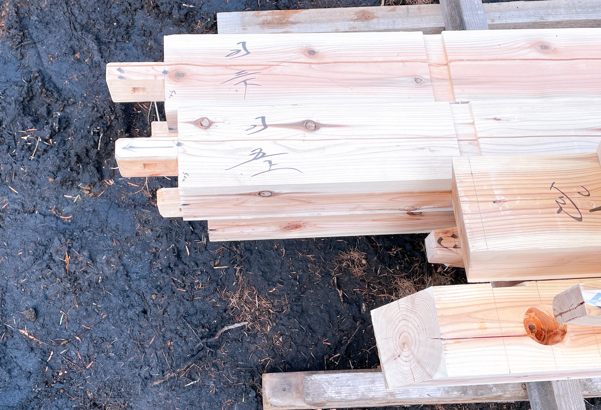 建物の構造材を組み立てることです。