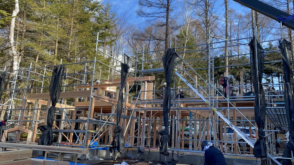 前日に少し作業が始まっていたようで私が来た時にはすでに1階部分が建っていました。