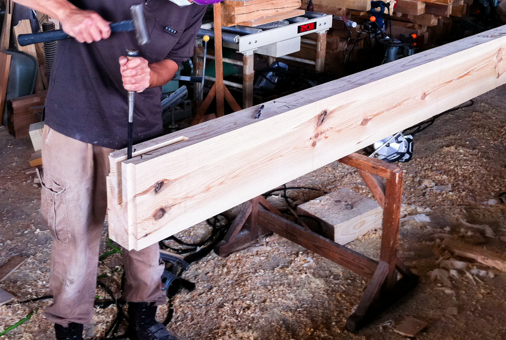 加工場で木の特性や癖を読み、手刻みで木材を加工します。
