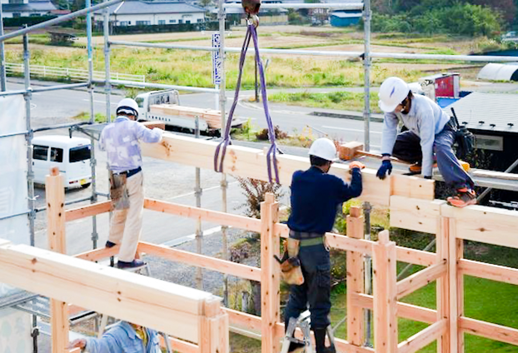 多くの場合、建て方の当日にはじめて大工職人が家の木材(骨組)を目にすることになります。