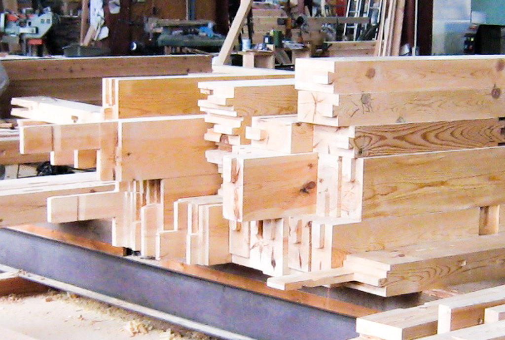 熟練の大工職人には木の癖を読む眼があり、反りや曲がりなどを読み、木を一本一本手刻みで組みあげます。