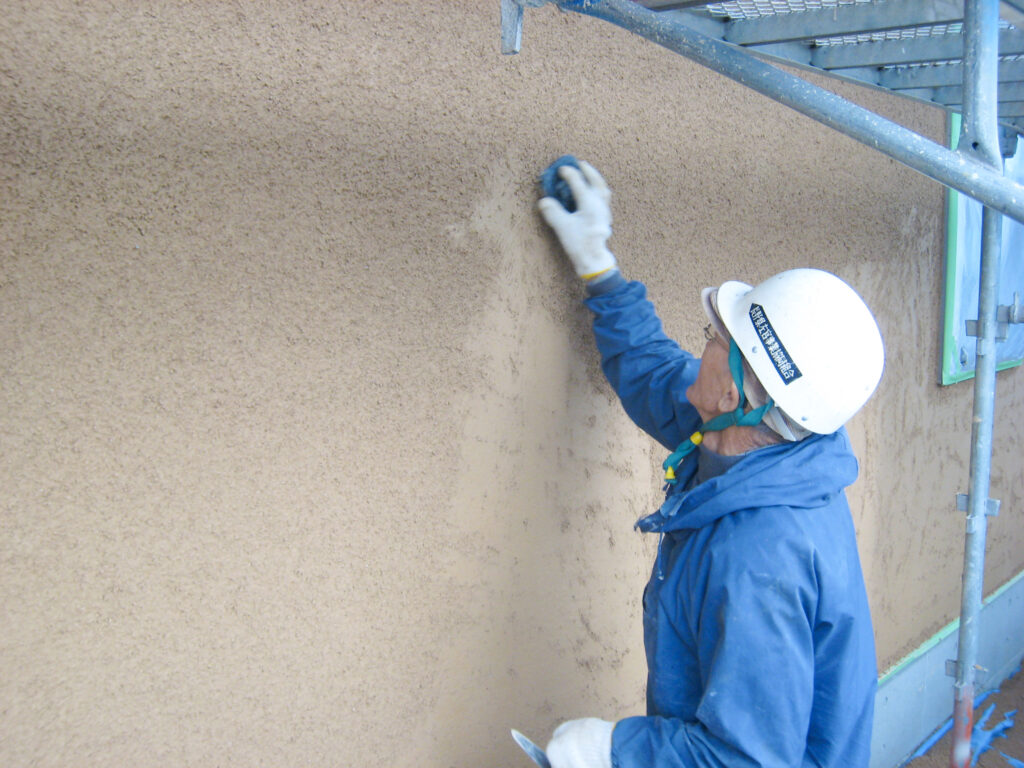 下塗り後は1週間程度で上塗りの作業を行えます。モルタル下地の塗り壁なら2週間から1ヶ月かかりますが、シラス壁ですと工期短縮になります。